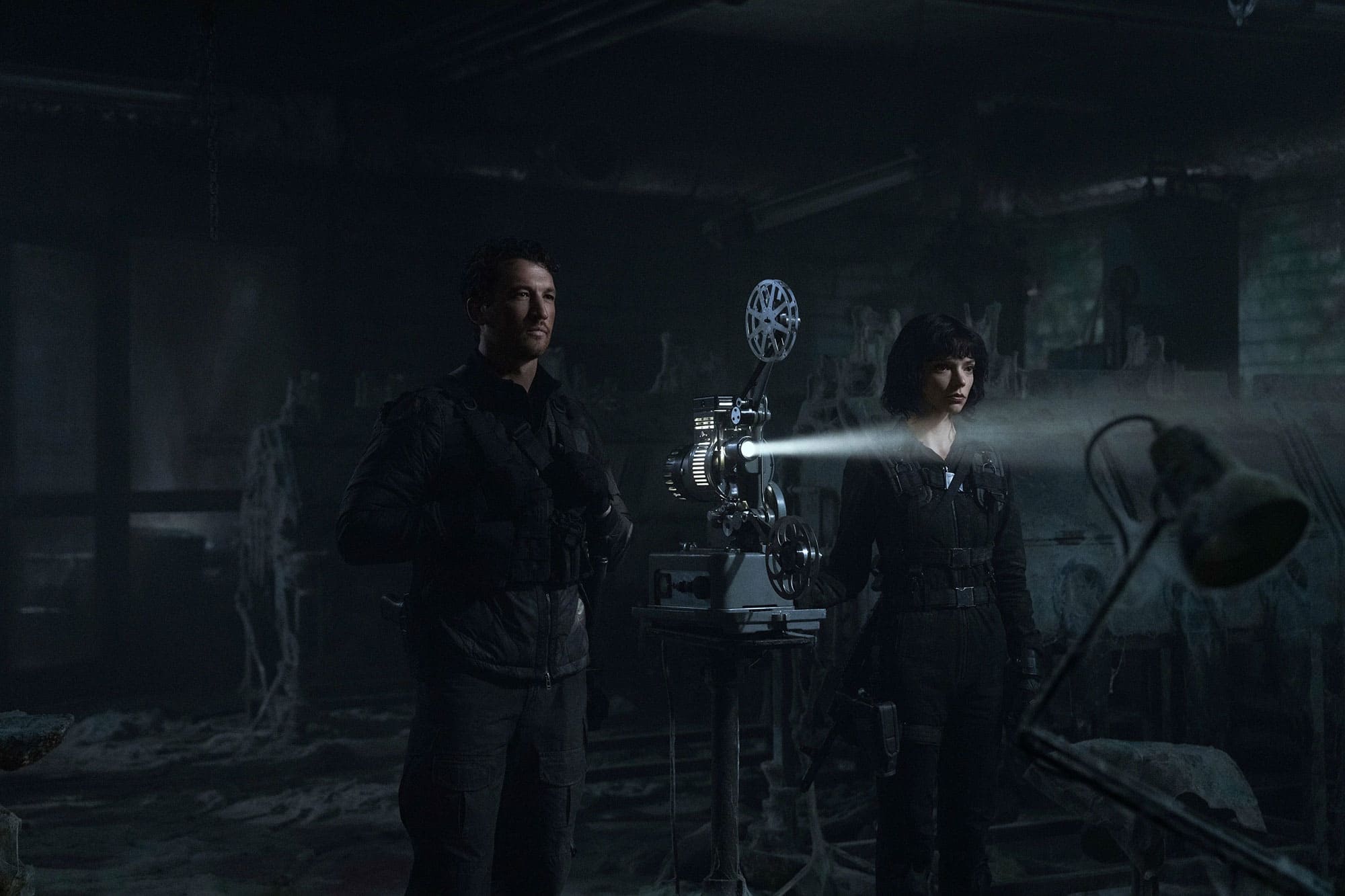 «Ущелье» (The Gorge, 2024). Снайпер Ливай (Майлз Теллер) соглашается на сверхсекретное задание — год просидеть в полном одиночестве в сторожевой башне на краю ущелья. На другой стороне в такой же башне сидит литовская снайперша Драса (Аня Тейлор-Джой). Их общая задача — следить, чтобы из тумана не вылезали «полые люди». Хотя общаться запрещено, вскоре они влюбляются друг в друга.